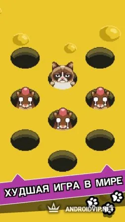 Сердитый Котик: ужасная игра - главный герой этой аркады - реально существующий кот по имени Соус Тардар. Он стал известен на весь мир благодаря своей сердитой на вид мордочке. Общественности настолько понравился этот пушистик с необычной внешностью, что интернет буквально был завален мемами с его участием, кота брали в рекламные ролики и даже издали о нём книгу.