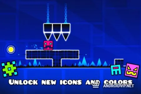 Geometry Dash по достоинству оценят игроки, предпочитающие сложные игры на Android. Разработчики смогли создать интересную и красочную игру с геометрической подоплекой, где в роли главных персонажей выступают не привычные сказочные персонажи или герои, а именно геометрические фигуры.