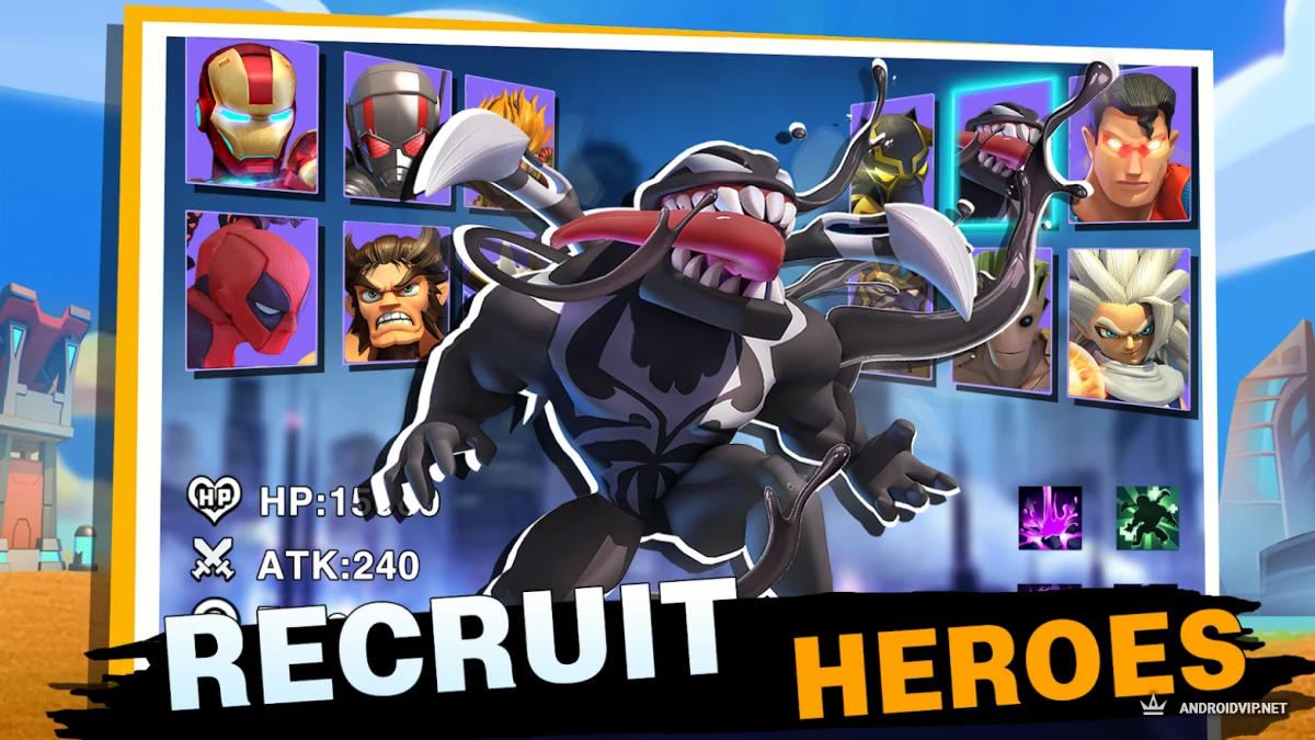Развивайте способности 50 супергероев, включая Дэдпула, Венома, Железного человека, Грута, Россомаху и многих других. Прикажите им охранять вашу базу или же атаковать врага. Используйте свой мозг чтобы возвести мощную защиту от врагов и не дать им захватить ваши владения. Воюйте с монстрами и побеждайте финальных боссов, получая ценную награду!