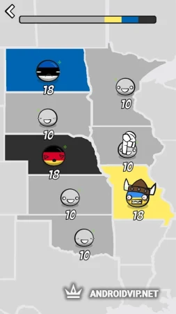 Перед тем как начать атаку убедитесь, что количество бойцов вашей армии превышает количество вражеских юнитов, если же врагов значительно больше, то стоит выбрать другое направление или сначала нарастить мощь. Однако, пока вы собираетесь в бой, на вас так же могут напасть, поэтому будьте аккуратны. Все страны представлены в художественном жанре онлайн-комиксов кантриболз, где каждая из них олицетворяется в виде шарика.