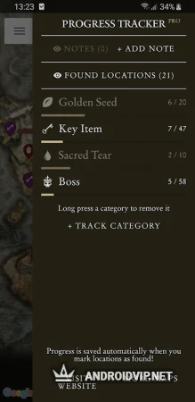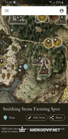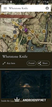 Детально проработанная карта The Lands Between включает в себя более 1500 локаций со всеми скрытыми квестами, редким оружием, ключами с подробным описанием и дополнительными фотографиями, а так же содержит более 70 категорий предметов. Быстрый поиск позволит вам находить нужные места в несколько кликов. Так же здесь есть возможность отмечать места на карте, помечать нужные предметы и даже делать заметки, добавляя их на карту.