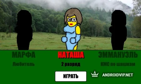 Каждая ваша последующая соперница будет значительно сильнее предыдущей, Марфа - любитель, Наташа имеет 2 разряд, а Эммануэль является КМС по шашкам. Каждый матч так же будет сопровождаться забавными фразочками и высказываниями ваших соперниц. Если вы одержите победу на всеми соперницами вам откроется бонусный режим игры - поддавки, обратная игра в шашки.