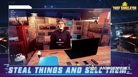 Thief Simulator - это симулятор вора с реалистичной графикой, множеством заданий и миссий. Здесь вам предстоит пойти по криминальному пути и освоить навыки самого отпетого вора, который врывается в дома влиятельных и богатеньких жителей, искусно обчищает их, а затем продаёт добытые вещи.