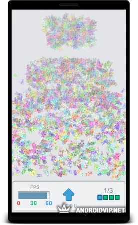 Тестирования проходит довольно быстро, и состоит оно из трёх частей. В первом шаге в основном нагружается графический процессор, где отображаются спрайты с различными трансформациями и фильтрами. Во втором же шаге уже запускаются спрайты с анимациями, что подключает основной процессор. На третьем этапе тестируется устройство на количество так называемых "Draw Call", что также в основном нагружает графический процессор.