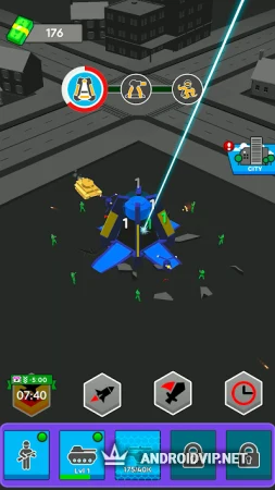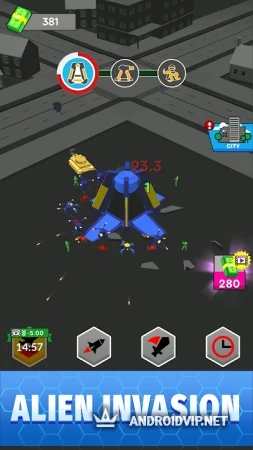 Сражения с пришельцами проходят в автоматическом режиме, вам лишь необходимо правильно распределять военные силы и постоянно прокачивать свою технику, так как каждый последующий враг на порядок сильнее предыдущего. Атакуйте пришельцев при помощи наземной броневой техники и воздушной, задействуйте пехоту, сбрасывайте на них ракеты и защищайтесь.