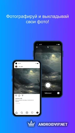 Редактируйте свой профиль, добавляйте описание и устанавливайте аватар. Выкладывайте посты (до 10 фото или видео в одной публикации), ставьте хештеги, подписывайтесь на других пользователей и просматривайте свою новостную ленту. Приложение постоянно обновляется и улучшается, но уже реализованы все самые основные и необходимые для пользования функции.
