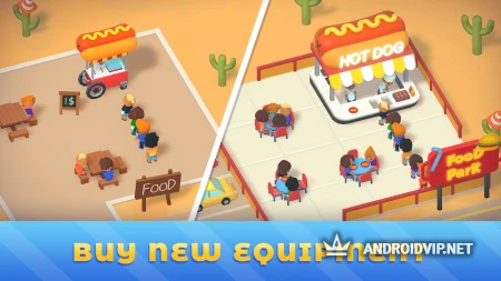 Постепенно вы сможете ускорять работу и делать её более эффективной, что начнёт приносить вам ещё больший доход. Повышайте уровень своих сотрудников и нанимайте на работу новых, чтобы обслуживать ещё больше клиентов. Выполняйте задания и продвигайте свой бизнес, открывайте новые кафе и рестораны, осваивайте кулинарные рецепты и постройте огромную империю фуд-парка.