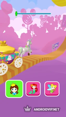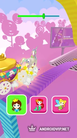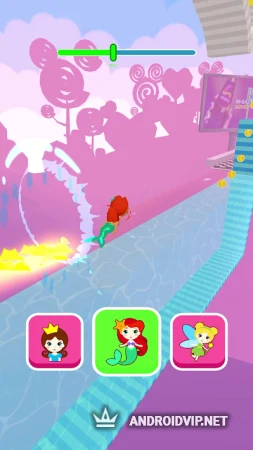 Каждая из принцесс наилучше всего подходит для определённого участка полосы препятствий. Например, принцесса-фея может пролетать над препятствиями, русалочка отлично плавает, а принцесса в карете может быстро проезжать по сухопутным дорогам. Чем быстрее вы будете подбирать подходящую принцессу, тем больше у вас шансов как можно скорее добраться до конца трассы.