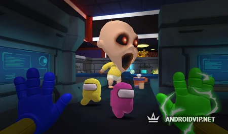Каждый уровень представляет собой динамичную игру на выживание, где вы будете играть одну из ролей в зависимости от режима, которых здесь представлено два - прятки и поиски. Если вам выпадет режим поисков, то вы сможете взять на себя роль младенчика в жёлтом и выйти на охоту за членами экипажа из Among Us, если же вас ожидает режим пряток, то придётся прятаться от младенчика вместе с другими членами экипажа.