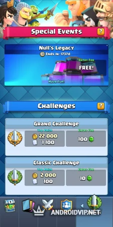 Null's Royale - это качественный приватный сервер по популярной стратегической игре Clash Royale. Здесь вы найдёте достаточно немало отличий от оригинальной версии, и заключаются они в основном в добавлении новых персонажей, игровых локаций и эмоций из ранних версий. Благодаря этому фанаты игры смогут погрузиться в ностальгию, а новички откроют для себя динамичную и увлекательную стратегию!