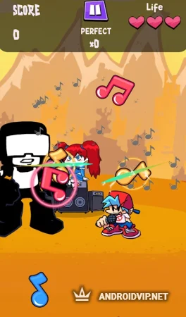 Если классический геймплей музыкальных аркад с пролетающими мимо стрелочками вам немного поднадоел, то попробуйте соединить рэп-битвы из FNF и механику Fruit Ninja, правда вместо фруктов вам предстоит разрезать ноты. Здесь вас ожидает несколько недель музыкальных испытаний как с оригинальными героями в новом исполнении, так и с уникальными персонажами, такими как Хаги Ваги, аниматроники и растения из Растения против зомби.