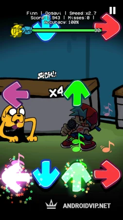 Среди персонажей вы найдёте Джейка и Финна из Время приключений, Пеппу, Соника и других персонажей, наравне с классическими героями. Кроме обычных недель здесь так же есть возможность создать свою собственную кастомную рэп-битву без каких-либо ограничений. Механика в игре стандартная, вовремя нажимайте на стрелочки, зарабатывайте очки и побеждайте противников.