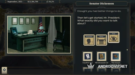 This Is the President - это увлекательная стратегическая игра с увлекательной сюжетной линией. Здесь вам предстоит побывать в роли президента Соединённых Штатов Америки, и разбираться с насущными делами. Но конечно же не всё так просто, так как ваш герой имеет за спиной преступное прошлое, и вас же нужно будет использовать все имеющиеся инструменты, чтобы обеспечить себе безопасность!