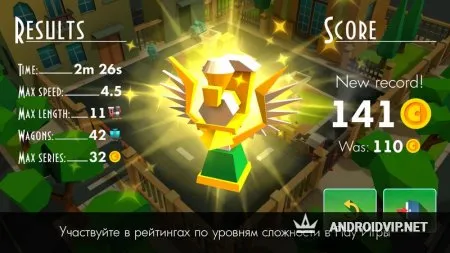 Но также паровозик не должен столкнуться со своими составами, иначе придется начинать все сначала. Во время прохождения можно заполучить различные бонусы, которые добавляют разнообразия игровому процессу. За каждый собранный состав можно получить монетки и потратить их на различные предметы. По мере прохождения вы также откроете новые локомотивы.