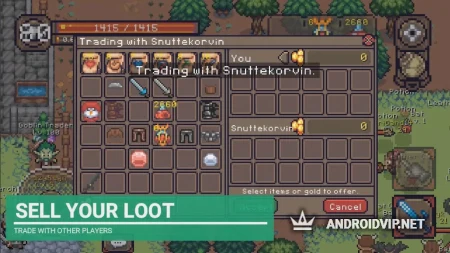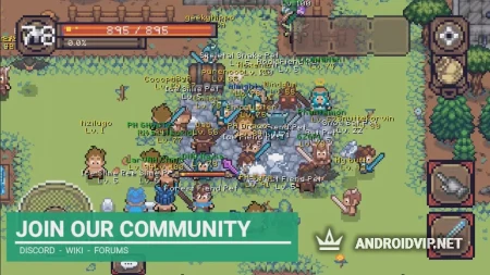 По мере прохождения вы будете прокачивать своего героя, повышать его уровень и добывать новую экипировку и оружие. Собирайте лут, снаряжайте своего персонажа и обменивайтесь предметами с другими игроками. Игра имеет пиксельное оформление в стиле олдскульных игр, множество миров и локаций для изучения и сотни квестов для выполнения.
