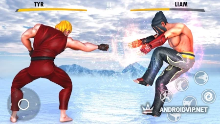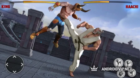 Управление в игре классическое, с левой стороны расположен джойстик для управления движениями вашего героя, а справа кнопки с различными видами ударов и способностей. В верхней части экрана над каждым игроком имеется шкала здоровья, внимательно следите за ней во время боя и не допускайте критических значений. В целом геймплей, персонажи и многие другие аспекты напоминают известный файтинг Mortal Kombat, однако в более упрощённой мобильной версии.