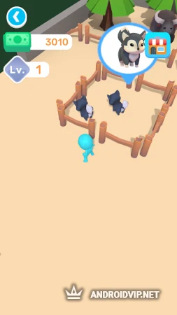 Продавая находящихся в вашем убежище животных вы сможете зарабатывать денежные средства, которые затем можно вложить в развитие магазинчика. С каждым новым уровнем вы будете открывать новые виды животных и открывать новые отделы для продажи постепенно расширяя магазин. Приобретайте для своего героя более быструю обувь, увеличивайте возможности и радиус поиска и спасайте ещё больше животных.