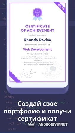 Перед началом использования вам предложат пройти небольшой опрос, который поможет программе составить для вас персональный учебный план, определяющий траекторию развития. Изучайте самые азы программирования, осваивайте HTML, CSS, jаvascript, а так же SQL, Python и другие языки. Сохраняйте свой прогресс и получайте новые достижения. Обучение отлично подойдёт даже тем, кто совершенно не знаком с программированием и только начинает делать первые шаги в этом направлении.