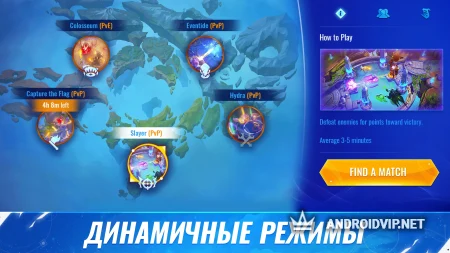 В первую очередь стоит отметить несколько достаточно разнообразных игровых режимов. В командных боях под названием "Гидра" вам понадобится сражаться с игроками и мощными боссами, в режиме под названием "Истребитель" проходят классические схватки на уничтожение вражеской команды. Также, получится заняться захватом древней крепости в "Эвентайд". Всё это проходит на самых разных и масштабных аренах, где ландшафт играет не последнюю роль.