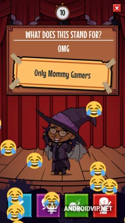 В общедоступном лобби вы можете найти игроков и сразу же начать викторину, либо можно создать свою приватную комнату и позвать туда друзей. Вам будут даны несколько вариантов игры на выбор - рисунок на заданную тему, закончи стихотворение, напиши ответ на вопрос и так далее. Каждый из игроков отвечает стараясь сделать это максимально смешно и остроумно, а затем ответы по очереди оцениваются всеми игроками. Побеждает тот, кто окажется смешнее и наберёт наибольшее количество очков.