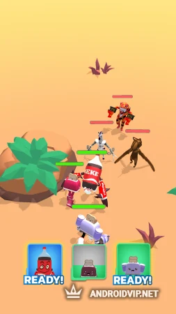 Ингредиенты для создания бойцов-мутантов могут быть самыми разными - тостер, бутылка колы, пожарный гидрант, ножницы, хот-дог, зебра, акула, орёл и так далее. В зависимости от выбранных вами предметов вы будете получать бойцов-мутантов разных уровней, от стандартного до легендарного. По мере прохождения можно будет собирать своих бойцов, задействовать их в создании новых и отправлять на поле боя сразу несколько бойцов.