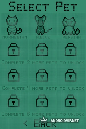 Следите за показателями своего питомца и старайтесь не допускать, чтобы они опускались. Как только два ваших котёнка достигнут взрослой стадии, то вы сможете разблокировать ещё три новые породы. Таким образом, каждый раз можно заводить ещё больше милых питомцев и открывать новых. Игра выполнена в пиксельном оформлении в стиле олдскульных ретро-игр, а игровой процесс сопровождается атмосферными 8-битными звуками.
