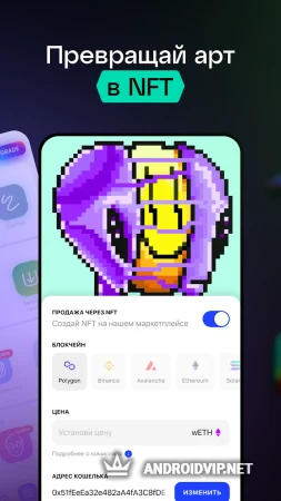 - Возможность превращения созданных работ в NFT;