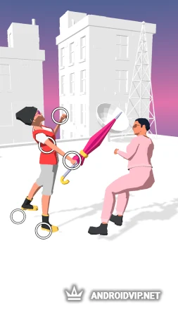 Механика здесь довольно простая, на герое будет несколько специальных меток, нажимая на которые вы сможете передвигать его по экрану. Пробуйте нажимать и перетаскивать руки, ноги и голову, делайте различные комбинации ударов и уничтожайте врага прежде, чем он успеет атаковать вас. За победы в боях вы будете получать золотые монетки, которые можно потратить на покупку различных скинов.