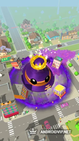 По мере продвижения и поглощения всего вокруг слизень будет стремительно увеличиваться в размерах и сможет есть не только деревья, скамейки и фонари, но и целые дома, небоскрёбы и корабли. Встретив на игровом поле других слизней вы также можете атаковать и поглотить их, но только если они меньше в размере. Получайте вознаграждения в виде очков слизи за съеденные предметы и достигайте первой строчки в таблице лидеров!