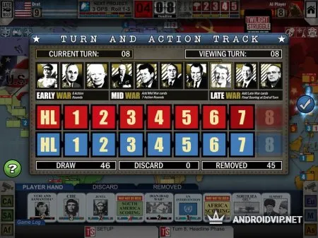 Twilight Struggle - игра, которая перенесёт геймера в эпицентр Холодной Войны - политическое и экономическое столкновение американцев и СССР, с пятидесятых и до девяностых годов прошлого века. Вы можете собственноручно взять управление над одной из сверхдержав и вершить свою историю! Поучаствуйте в подлинных событиях этого периода - десталинизации, кубинском ракетном кризисе, войне во Вьетнаме многих других. Игра получила множество наград и хвалебных рецензий от игровых изданий. Вас ждут соперники с высоким уровнем искусственного интеллекта, мультиплеер и система рейтинга. Разработайте свою собственную стратегию и станьте мировым лидером, одержав верх над всеми остальными!