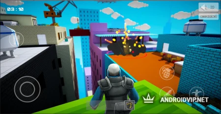 Во время матчей вашим главным оружием станут не привычные винтовки, автоматы и пистолеты, а гранаты и холодное оружие в виде ножика. Перемещайтесь с одного острова на другой, находите надёжные укрытия и выслеживайте врагов или же атакуйте их в открытую при помощи гранат. Собирайте коробки с предметами и используйте реактивный ранец, чтобы получить преимущество над врагами. Управление осуществляется при помощи джойстика и нескольких кнопок с действиями.