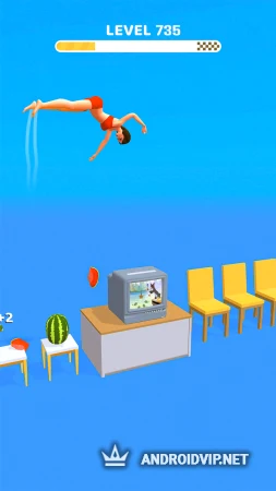 Home Flip: прыжки до кровати - это аркадный раннер от CASUAL AZUR GAMES с ragdoll-физикой и весёлым геймплеем, где вам предстоит помочь своему персонажу добраться до кровати. На пути к заветному спальному месту вас ждут самые разнообразные препятствия в виде бесчисленного количества мебели и рандомных вещей, поэтому будьте осторожны.