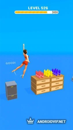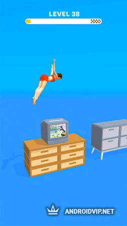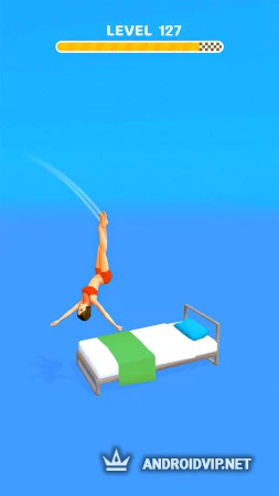 Главное правило прохождения - вам ни при каких условиях нельзя касаться пола, иначе придётся начать уровень заново. Нажимайте на экран чтобы подпрыгивать и нажимайте дважды, чтобы сделать сальто. Прыгайте по разнообразным предметам, отскакивайте от них, крушите всё на своём пути, собирайте по дороге денежные купюры и добирайтесь до заветной кровати.
