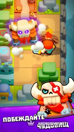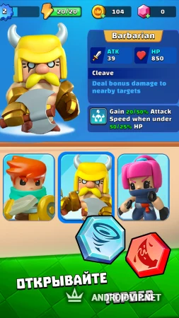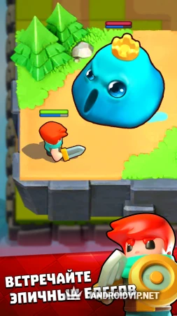 За прохождение игровых этапов вы будете получать мощные артефакты и различные трофеи. Между сражениями вам предстоит застраивать и укреплять лагерь, размещать различные здания, редактировать ландшафт и создавать свой мир. Каждого героя также можно улучшать, прокачивать таланты и подбирать снарягу.