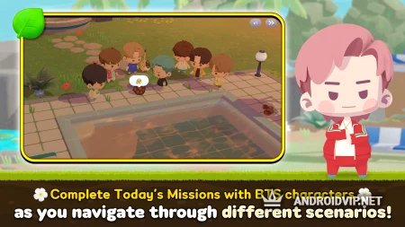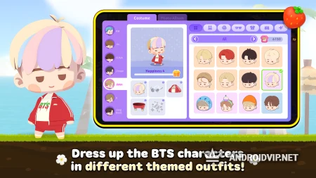 Добро пожаловать на остров BTS! Твои любимые музыканты уже ждут тебя и готовы вместе с тобой творить райское местечко на острове. Каждый из них отражает характер реальных участников бойз-бенда - РМ, Джей-Хоуп, Ви, Чонгук, Чимин, Шуга и Джин. Играйте, исследуйте остров и узнавайте их истории. Вы так же сможете редактировать внешний вид парней, начиная от причёсок и заканчивая крутыми нарядами.