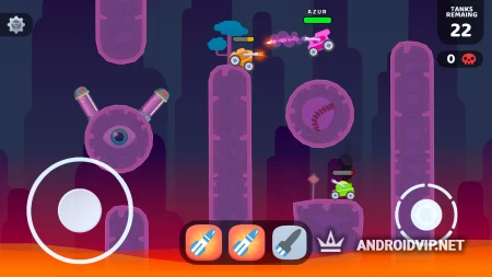 Каждое сражение проходит на различных локациях, где есть самые уникальные виды локаций, за которыми можно прятаться, устраивать ловушки, или же уходить от ударов противников. Сама механика боёв позволяет вести довольно активные бои, где даже можно посылать свой танк в полёт, выстрелив под себя. Разнообразие вооружение не такое обширное, но это компенсируется возможностью свободно продумывать тактику.