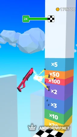Первые несколько уровней придётся приноровиться, ведь передвигаться по игровому полю в виде пистолета не так уж и просто, но со временем вы сможете освоить управление и возможно даже совершать крутые комбо. По мере прохождения уровней их сложность будет увеличиваться, а вы сможете разблокировать ещё больше оружия.