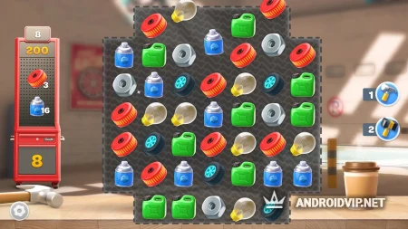 Головоломки здесь классические в стиле "три в ряд", где вы будете находить на игровом поле одинаковые предметы, соединять их в цепочки и получать за это очки. Заработав достаточно средств можно снова приступить к работе автомеханика. По мере прохождения уровней сложность головоломок будет увеличиваться, а вам откроется всё больше возможностей для улучшения автомобилей.