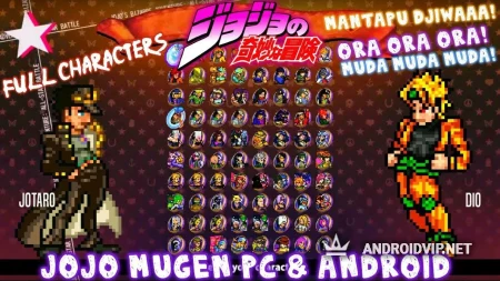 JoJo MUGEN - это зрелищный файтинг с классическим геймплеем и пиксельной графикой. Данная игра является портом олдскульного оригинала, где вы сможете сыграть за самых различных персонажей, обладающие уникальными способностями и приёмами. Если вы соскучились по настоящим дракам на арене, то данная игра, то что вам нужно!