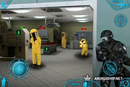 Ваша команда будет состоять из трёх различных бойцов, которые имеют свои уникальные способности и вооружение. По мере игры вы сможете прокачивать их, покупая новую экипировку, оружие, и проводя тренировки, где вы параллельно сможете улучшить и ваши навыки стрельбы. Сами задания же состоят в основном в том, что вам надо обезвредить отряд противников, и постараться спасти невинных жителей.