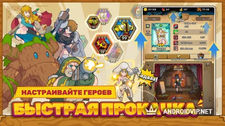 Геймплей здесь достаточно простой, где вам предстоит управлять либо командой воинов, либо только вашим главным героем. Всех их можно будет постепенно прокачивать, или же открывать новых бойцов. Управление же также не очень сложное, где сражения в основном проходят в автоматическом режиме, а вам нужно лишь контролировать процесс и использовать различные способности!