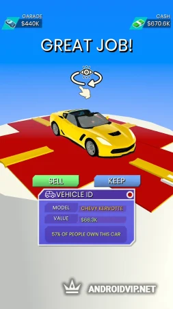 По прохождению трассы, ваш герой садиться за ту машину, от которой есть руль в руках на данный момент. Выигранную же машину вы сможете оставить у себя в гараже, или же продать, чтобы получить новые скины и возможности. Собранной коллекцией вы сможете похвастаться с друзьями, или же попробовать поездить на разных трассах за рулём ваших машин.