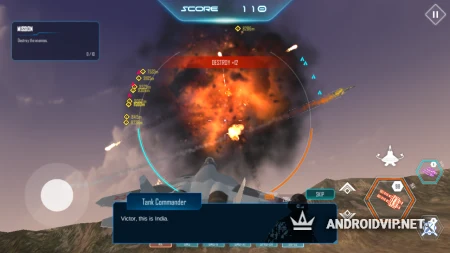 Как только начнёте игру, в ангаре будет стоять довольно простой боевой самолёт, на котором уже сможете совершить первые вылеты и выполнить несколько сюжетных заданий. По мере прохождения вы сможете устанавливать на самолёт новые пушки, пулемёты и модули, что увеличить характеристики. А затем появится возможность открыть более быстрые и мощные модели и испробовать их в деле!