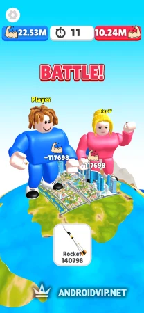 Только для того, чтобы приобрести более тяжёлые предметы для занятий, вам понадобится продавать набранную вами мышцы, как бы странно это не звучало. Среди доступных вещей будут мотоциклы, машины, здания, и даже космические ракеты, которые позволят вам вырасти до размеров целой планеты!
