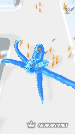 Перемещайтесь по игровому полю и сгребайте при помощи своих многочисленных щупалец толпы людей. Избегайте встречи с копами, чем слабее ваш осьминог, тем больше у них возможностей быстро вас уничтожить. В верхней части экрана находится шкала здоровья, следите за ней и не попадайте под пули копов. После каждого уровня вы снова сможете прокачать осьминога, добавить ему щупальца, скорость или очки здоровья.