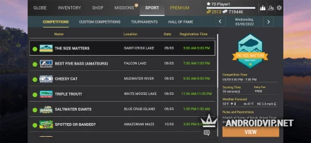 Онлайн режим включает в себя в основном возможность соревноваться с другими игроками, ставить рекорды и сравнивать успехи по статистике. Реалистичности ещё придают красивые и разнообразные локации, коих на данный момент есть более двадцати. Каждая из них имеет фотореалистичную графику, уникальные виды водоёмов, дна, растительности, и просто красивые пейзажи с расслабляющей озвучкой.