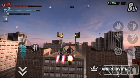 По мере игры вы сможете прокачивать вашего персонажа, покупая более мощное оружие, экипировку и улучшая мотоцикл. Помимо одиночной компании, у вас есть возможность сыграть в быстрый заезд для тренировки или отдыха. Графика и эффекты здесь также на высоте, нисколько не уступают уровню консолей, что поможет прочувствовать всю мощь от схваток на дороге!