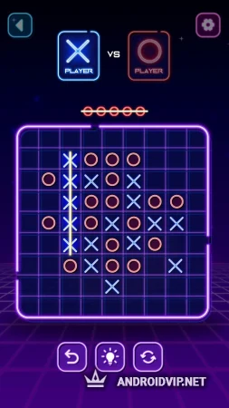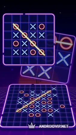 Tic Tac Toe Glow: 2 Player XO - это классическая головоломка Крестики Нолики, где вы сможете соревноваться как с другими игроками, на одном устройстве, или же против умного искусственного интеллекта. Здесь вас ждут стандартные правила, но с возможностью увеличивать размер поля, и попробовать дополнительные мини-игры!