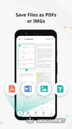 Качество получаемого результата достаточно высокое, благодаря получится использовать приложения как для работы, так и для личных целей. Сканировать можно любой документ в PDF формате, фотографию, или же можно использовать камеру на смартфоне для быстрого форматирования текста на бумаге в электронный документ.