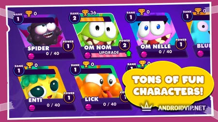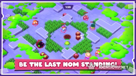 Om Nom Knockout - это красочный многопользовательский экшен, в котором вам предстоит сразиться в командах 3 на 3. Здесь вы сможете сыграть за забавных и довольно милых персонажей из известной игры про АмНяма. Сами битвы проходят динамично и быстро, где нужно прокачать ваши навыки, и умело пользоваться различными умениями персонажа!